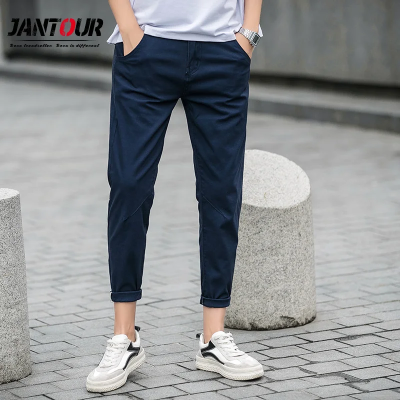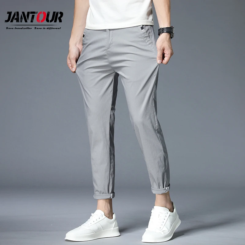 Jantour Musim Semi Musim Panas Kasual Celana Pria Katun Slim Fit Chino Ankle Length Celana Fashion Jpg