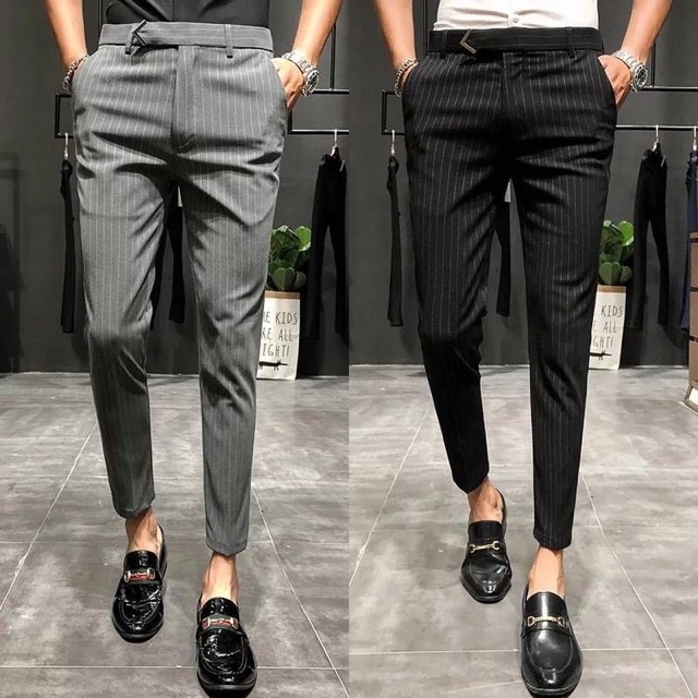 Size 28 34 Men Ankle Length Pants Spring Summer Autumn Fashion Casual Stripe Slim Fit Stretch Long Business Suit Dress Pants Chinos Slacks Black Gray Shopee Singapore
